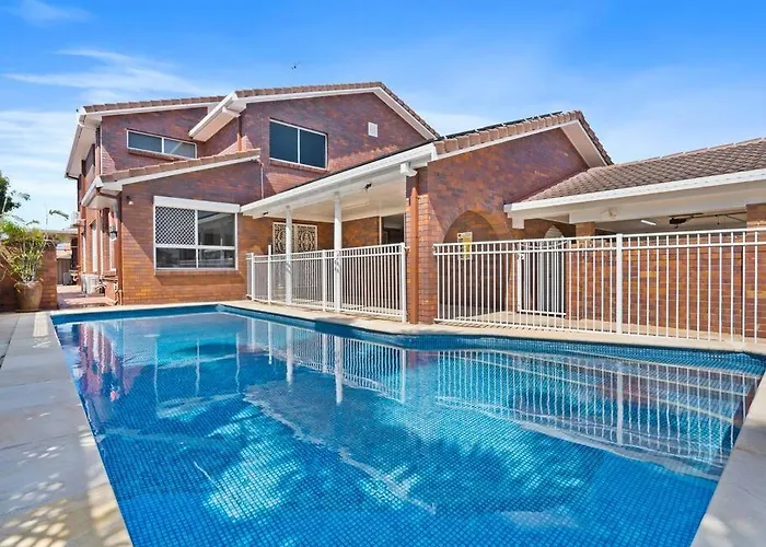 Located 4.9 km from AquaSplash Inflatable Water Park, the 3-bedroom Spacious Family Oasis 5Bd Waterfront Pool Villa provides access to a swimming pool. Featuring a terrace, the Gold Coast villa is situated 10 minutes by car from Pratten Park.